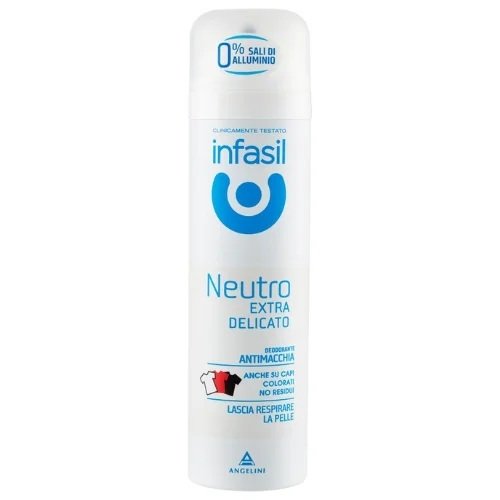 - Deodorantul spray Infasil Neutro Extra Delicato oferă o soluție delicată și fiabilă pentru